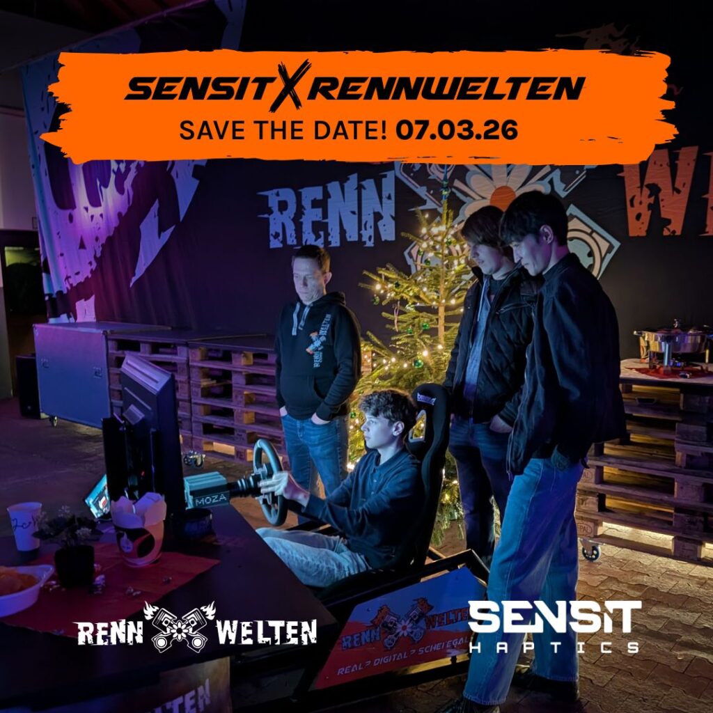 Ihr habt die Möglichkeit, verschiedene Simulatoren mit SensitHaptics-Ausstattung zu testen, Setups auszuprobieren und euch in entspannter Atmosphäre mit dem RennWelten-Team, Sensit und anderen aus der Community auszutauschen.